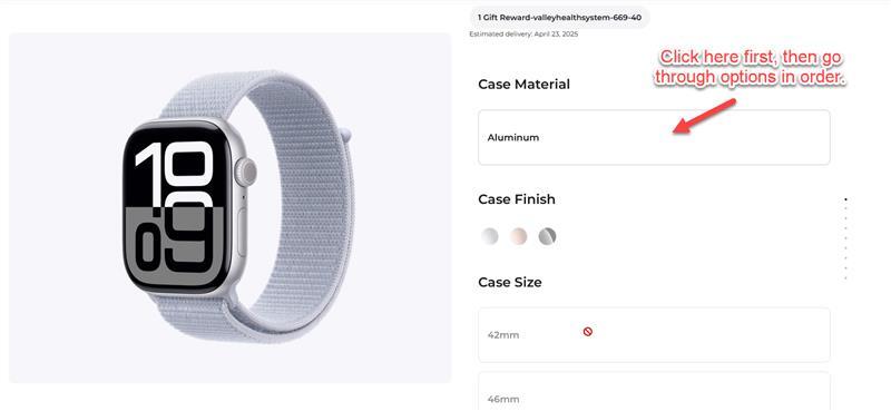For example, the first box “Case Material” has “Aluminum” showing by default. You must still click in this box to confirm the selections.