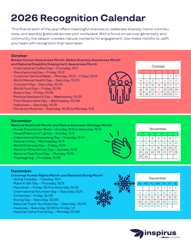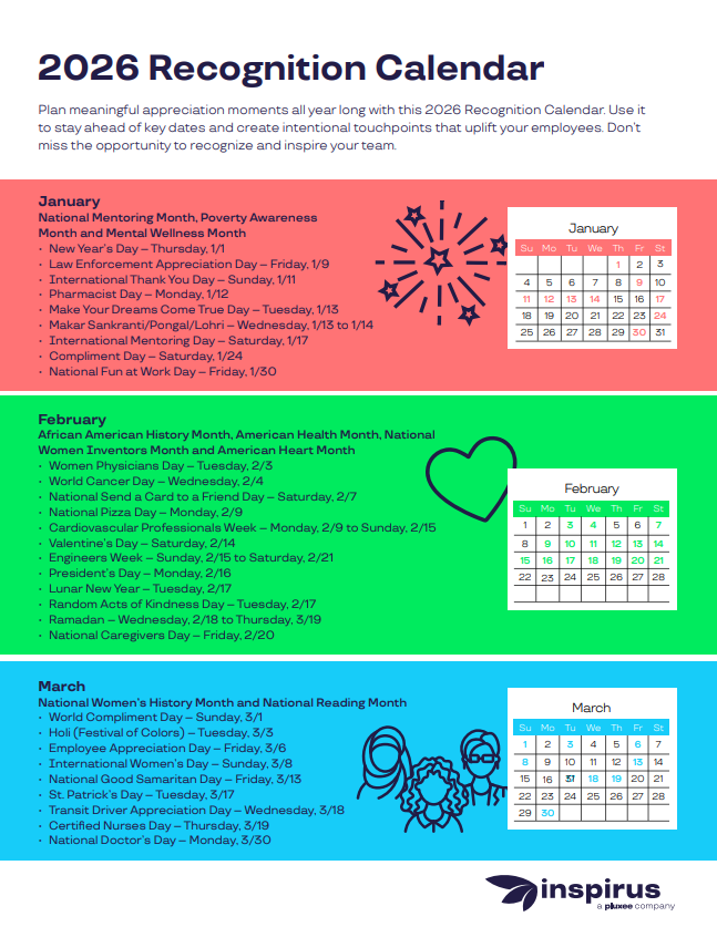 Never miss an opportunity to recognize your employees with the help of our 2026 Recognition Calendar.
